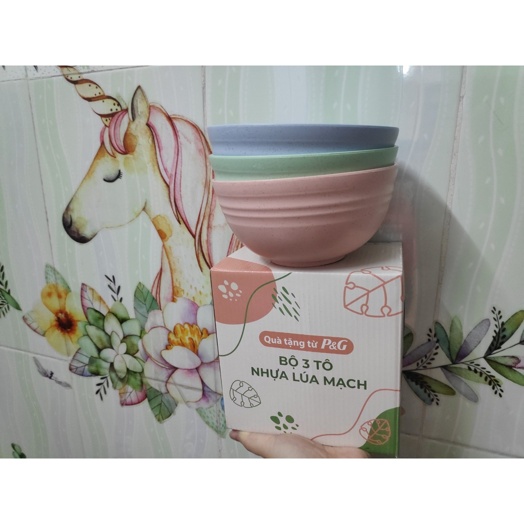 Bộ 3 tô nhựa lúa mạch - Quà tặng cao cấp từ Pampers chính hãngBộ 3 tô nhựa lúa mạch làm từ nhựa lúa mạch, an toàn với sức khỏe, thân thiện với môi trường, có thể chịu được nhiệt độ lên tới 120 độ C