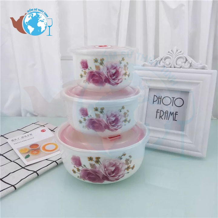 Bộ 3 tô sứ lạnh cao cấp - 3 tô sứ có nắp đậy đựng thực phẩm