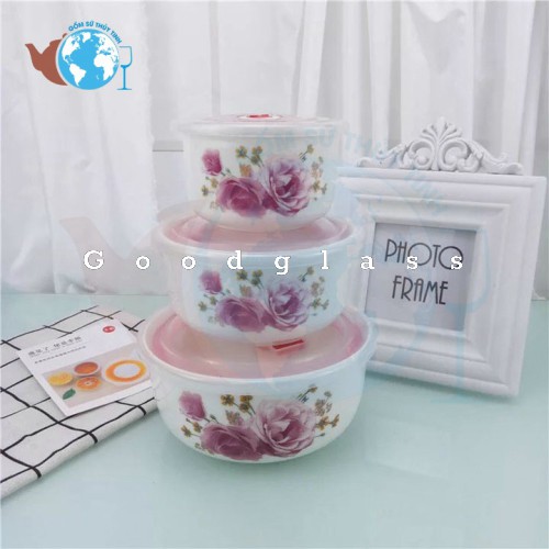 Bộ 3 tô sứ lạnh cao cấp - bát sứ lạnh có nắp chân không - Có hộp quà đựng