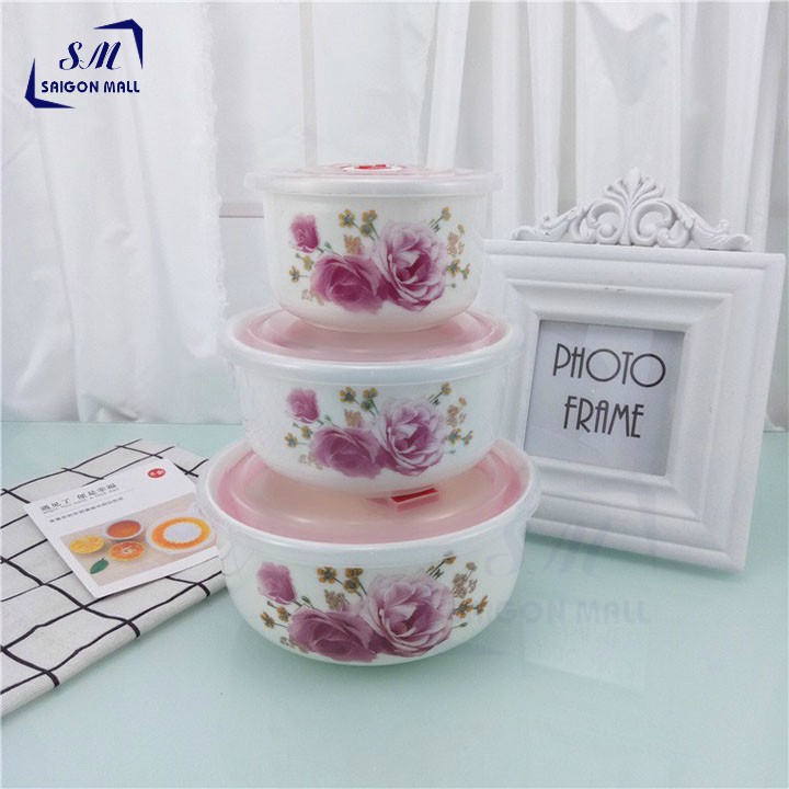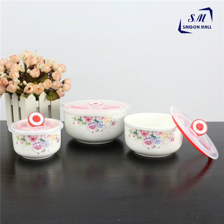 Bộ 3 tô sứ lạnh cao cấp - bát sứ lạnh có nắp chân không- HÀNG CAO CẤP -