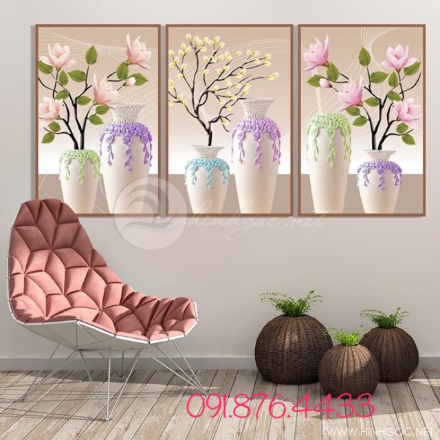 Bộ 3 tranhh CANVAS mẫu bình hoa