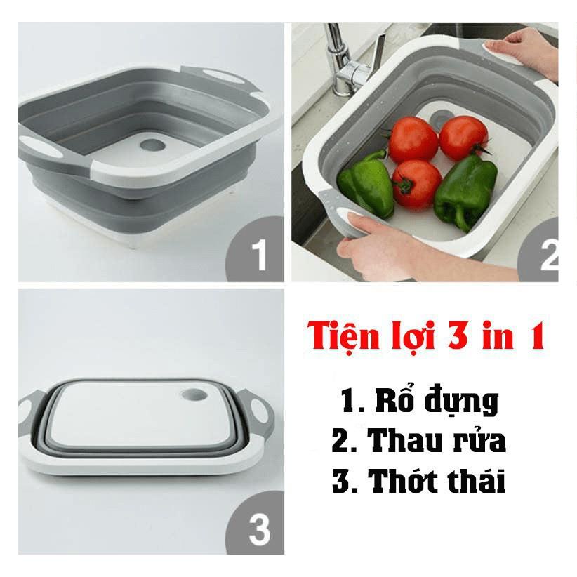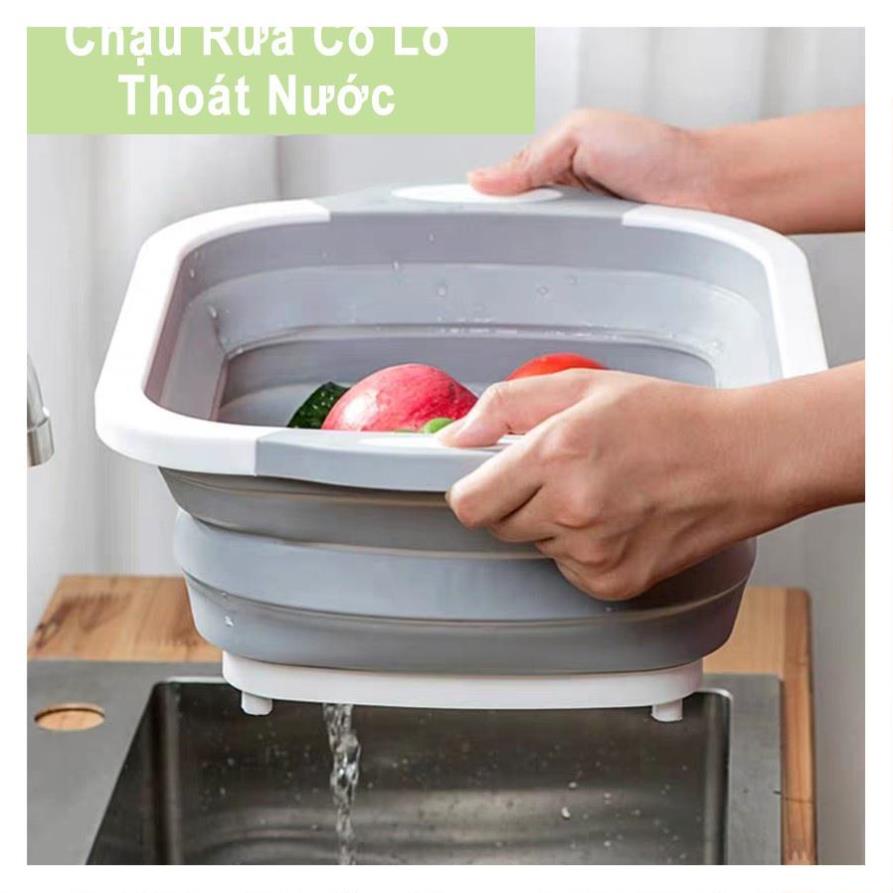 THỚT KÈM CHẬU GẤP GỌN, Chậu Rửa Gấp Đa Năng - Kiêm Thớt - Rổ Đựng ĐA NĂNG SIZE LỚN -THÔNG MINH❣️ 3 trong 1❣️