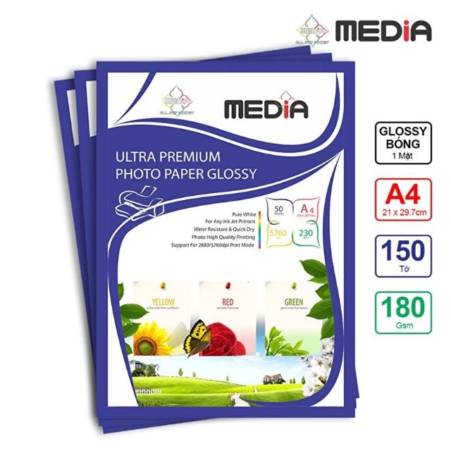 Văn Phòng Phẩm > Sổ & Giấy Các Loại > Giấy In || Bộ 3 xấp giấy in ảnh Media 1 mặt bóng A4 180gsm 50 tờ x 3Còn hàng