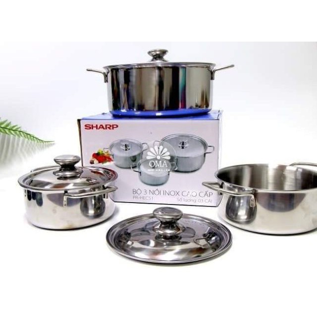 - Tên sản phẩm: Bộ 3 nồi i nox Sharp dùng được bếp từ- xuất xứ: VIỆT NAM