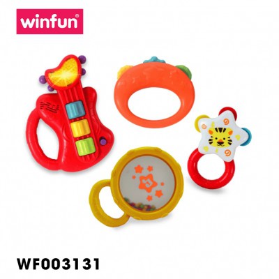 Bộ 3 xúc xắc và đàn Guitar mini cầm tay phát nhạc Winfun 3131- Gồm 3 món xúc xắc và 1 chiếc đàn Guitar mini dễ thương cho bé