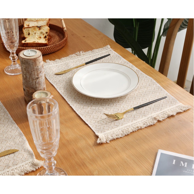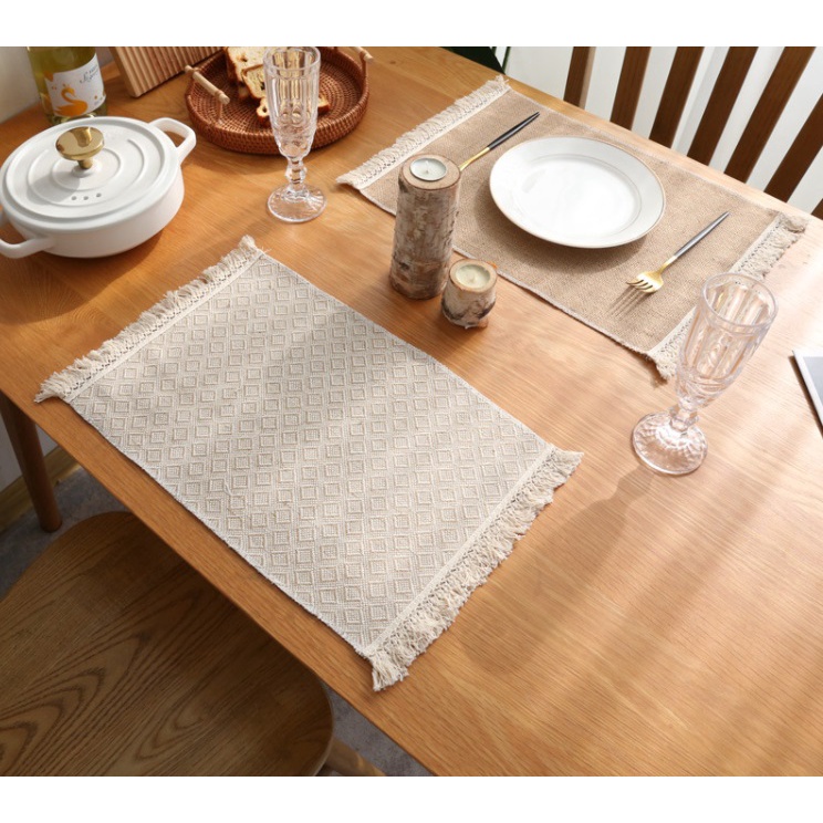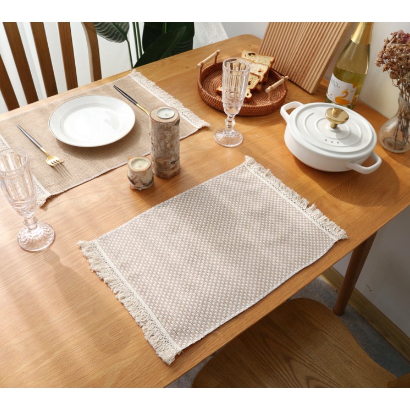 [30*45cm] Thảm đay dệt, tấm lót bàn ăn hình chữ nhật trang trí decor phòng bếp kiểu Âu [LC018 - LC020]