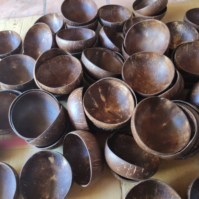30 bộ gáo dừa + muỗng gỗ dừaSize lớn 10-12cm kèm muỗng gỗ dừa cafe 18cm.