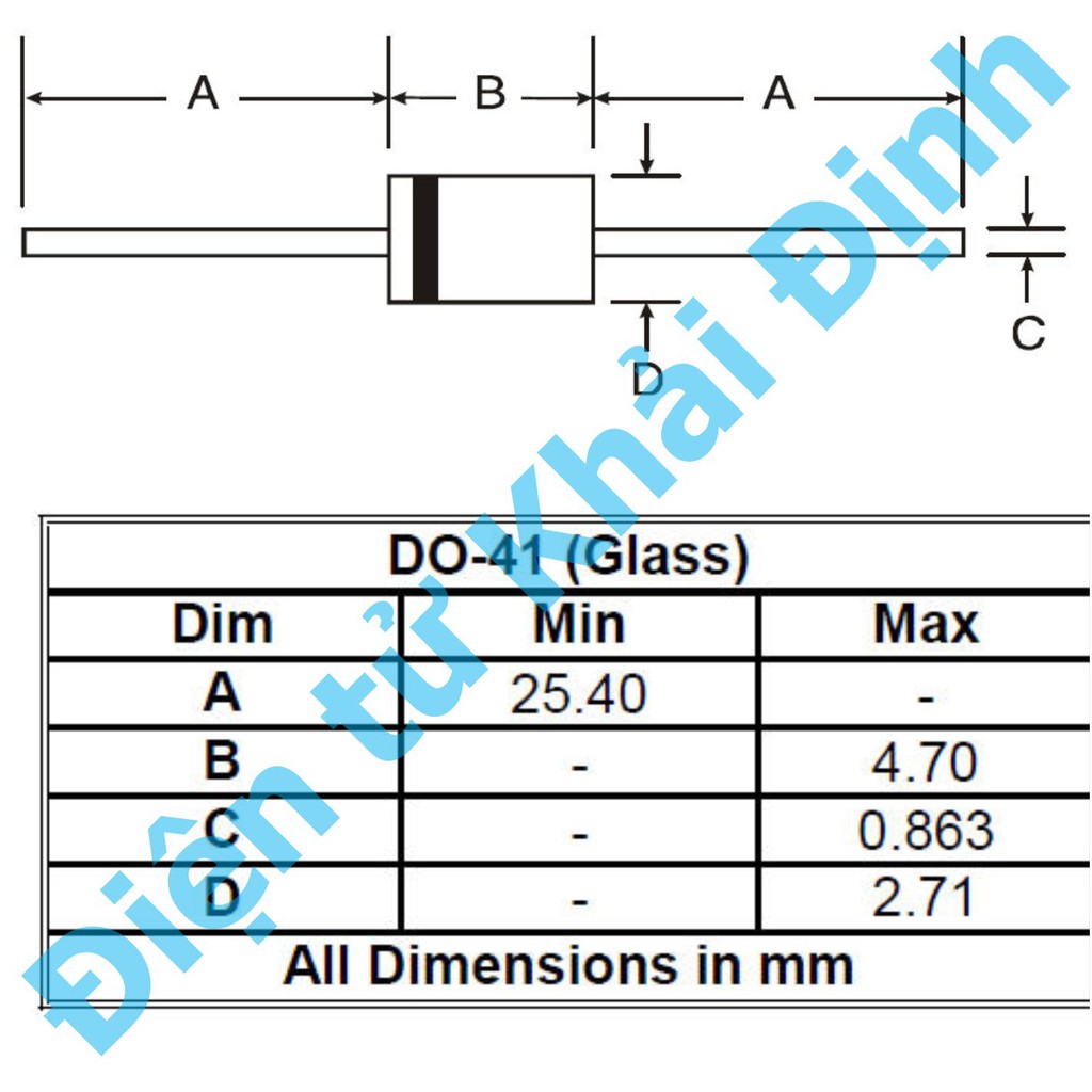 Giới thiệu 30 con Diode Zener đi ốt diode ổn áp 1W, ST DO-41 các loại 1N4726A ~ 1N4756A kde6045