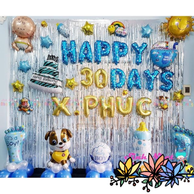 1. Bộ chữ HAPPY 30 DAY (Được chọn màu vàng đồng, bạc, đỏ, hồng bi)