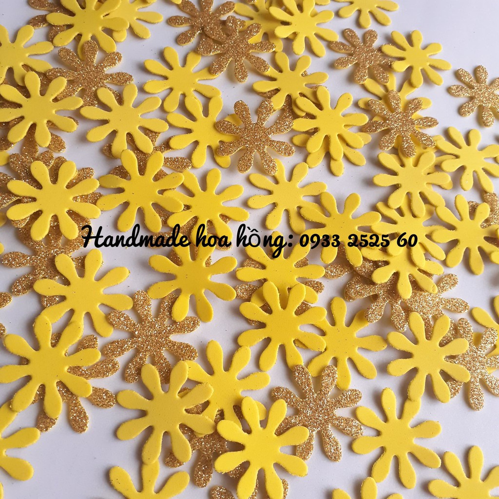 Giới thiệu 30 hoa cúc 3.8cm, giấy xốp kim tuyến/ xốp nhũ kim tuyến_Hình trang trí_sổ scrapbook, bookmark_thủ công mầm non, mỹ thuật