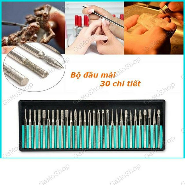 Nhà cửa & Đời sống > Dụng cụ & Thiết bị tiện ích > Dụng cụ > Cưa, máy cắt & máy mài || Bộ 30 mũi mài khắc chân 3mm dùng cho máy khoan mài cắt miniCòn hàng
