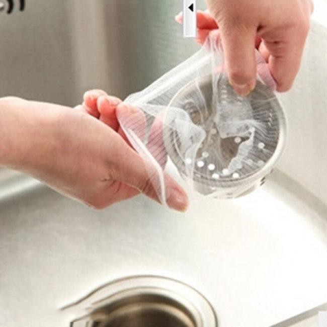 Sau mỗi lần nấu nướng, chỉ cần lôi túi rác ra khỏi lưới lọc và bỏ vào thùng rác.Miệng túi co giãn tốt, phủ kín, phù hợp với nhiều loại bồn rửa chén khác nhau.