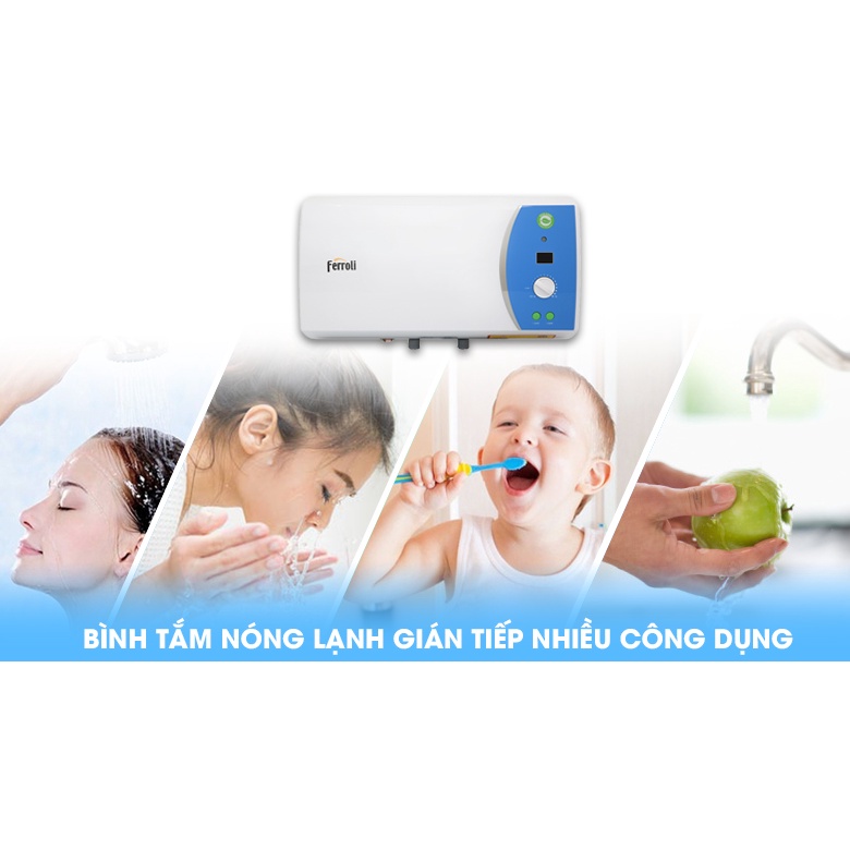 [30L]Bình nước nóng Ferroli VERDI AE 30 lít - Bình nóng lạnh gián tiếp - Hiện thi nhiệt độ,thanh đốt siêu bền
