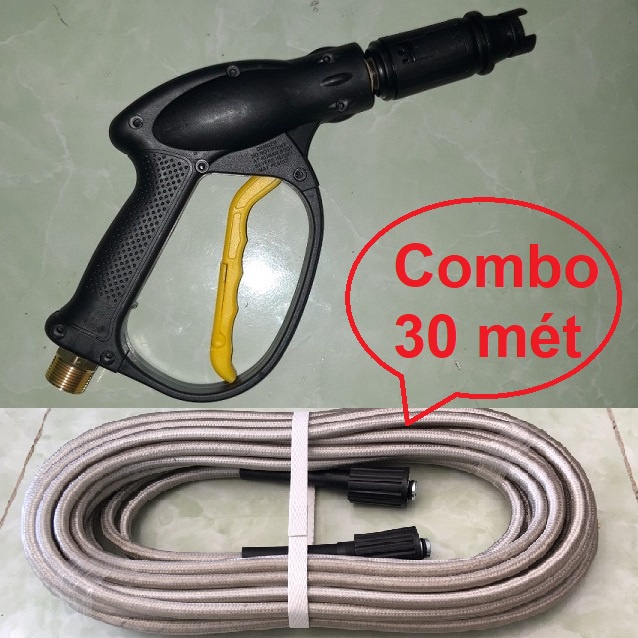 Bộ 30m-15m-7m dây rửa xe và súng xịt - súng rửa xe áp lực cao ren 22mm - lõi 15mm