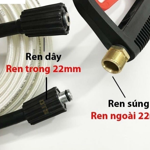 + Ren nối dây: Súng ren ngoài 22mm >> Nối với dây ren trong 22mm