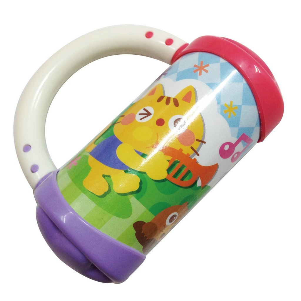 Tay cầm bằng nhựa hình tròn giúp bé cầm chắc tay hơn và có thể lúc lắc để chuông phát ra tiếng kêu vui tai.