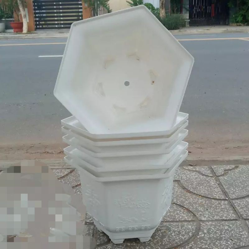 Nhà cửa & Đời sống > Làm vườn > Chậu cây || (32x22cm) Chậu nhựa lục giác trắng hoạ tiết nổi chân cao dày, bóng, đẹp (L19)Còn hàng