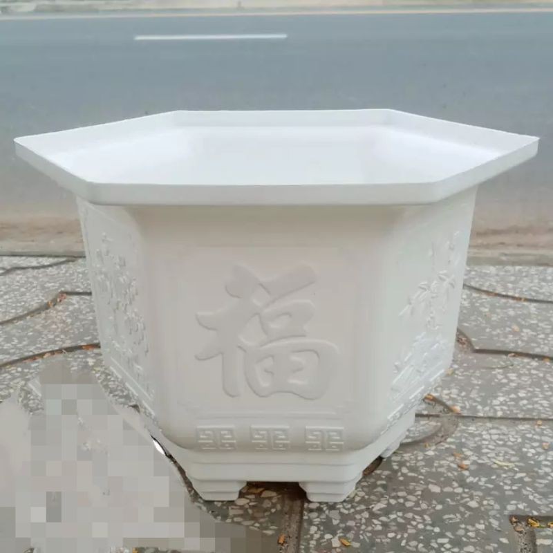 (32x22cm) Chậu nhựa lục giác trắng hoạ tiết nổi chân cao dày, bóng, đẹp (L19)