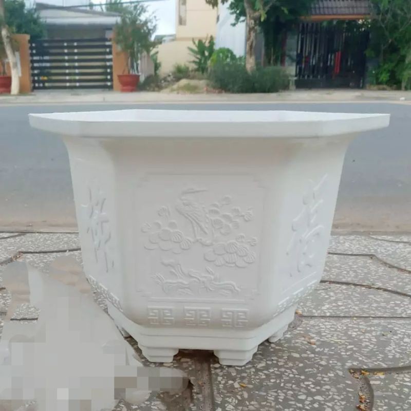 - Màu sắc : Trắng trơn có in hình họa tiết nổi ở 6 mặt ngoài của chậu