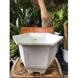 Nhà cửa & Đời sống > Làm vườn > Chậu cây || (32x22cm) Chậu nhựa lục giác vân giả đá đen/Trắng/Đỏ viền hoa văn nổi loại 1 dày, cứng, đẹpCòn hàng