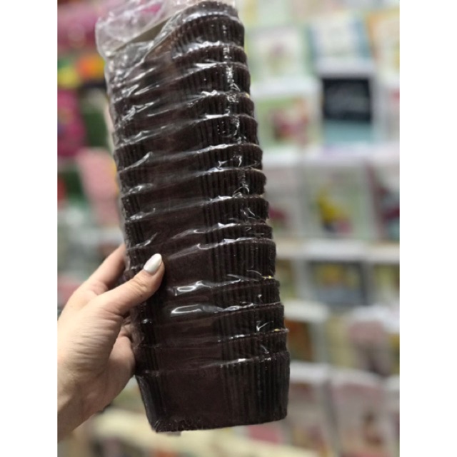 Sản phẩm gồm 1 cây lót giấy nến màu nâu hình oval để lót bánh1 cây có 350 cái lót giấy