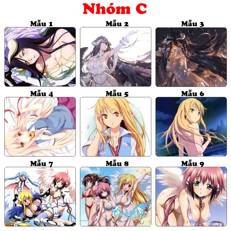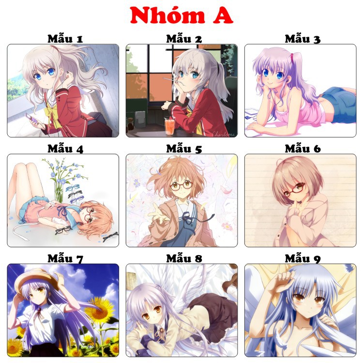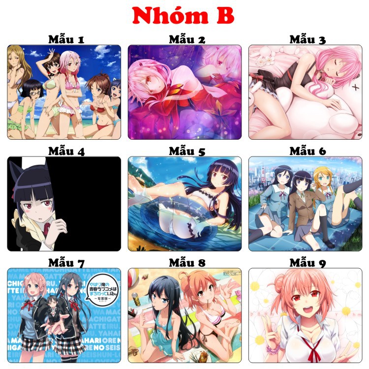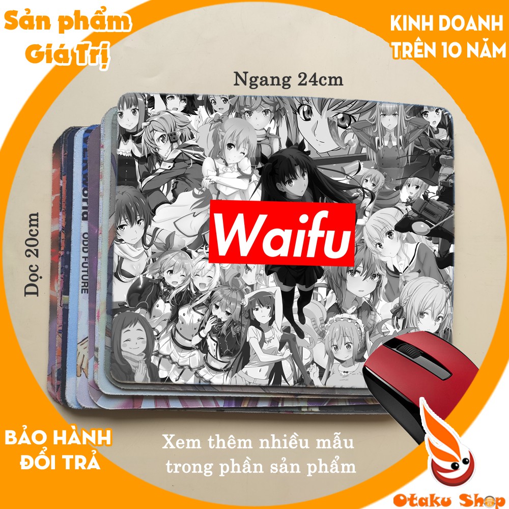 <36 mẫu> Lót chuột máy tính Waifu Anime dành cho otaku cỡ bàn di chuột lớn 20x24cm chất liệu mouse pad cao su