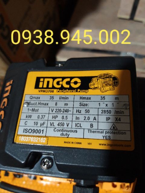 370W Máy bơm nước hiệu Ingco- VPM3708MÁY BƠM NƯỚC 0.5HP INGCO VPM3708