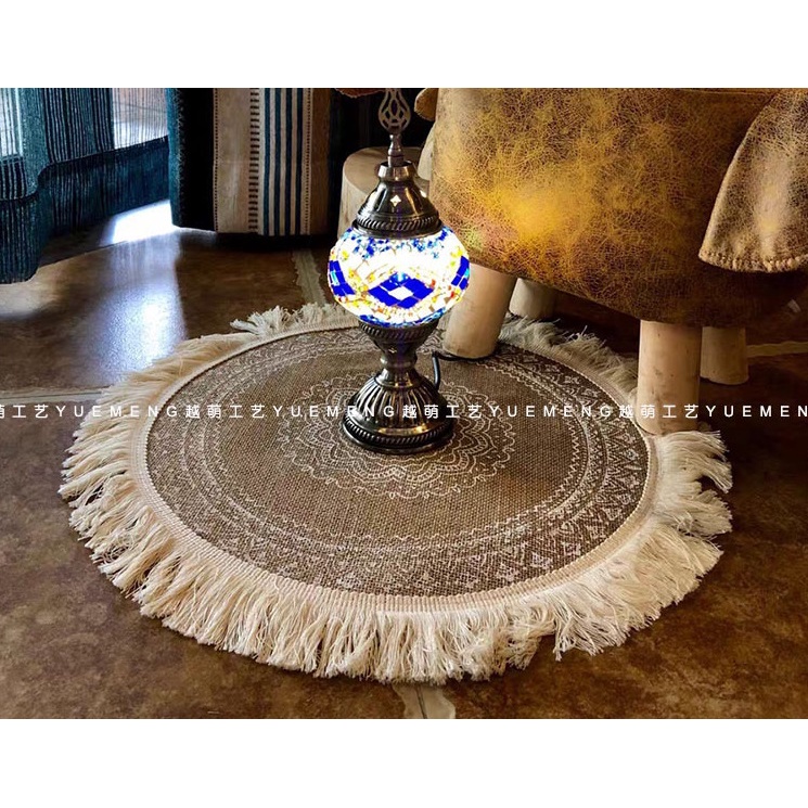 - Chất liệu : thảm dệt tư sợi đay, tua rua sợi cotton. Thảm dày dặn, chắc tay, chi tiết tốt. Thảm bền, tránh ẩm mốc tốt trong thời gian dài.