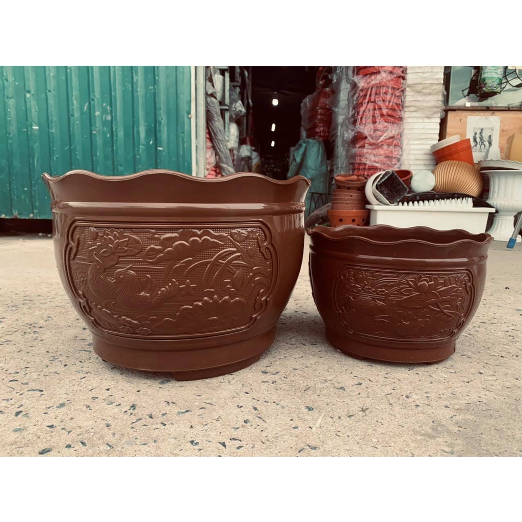 Chậu Nhựa Uyên Ương giả sứ cao cấp siêu đẹp_Chậu nhựa họa tiết chân cao tráng men sứ xịn. Bền chắc, rất đẹp và trang nhã, phù hợp hoa kiểng, cây ăn trái- Kích thước: