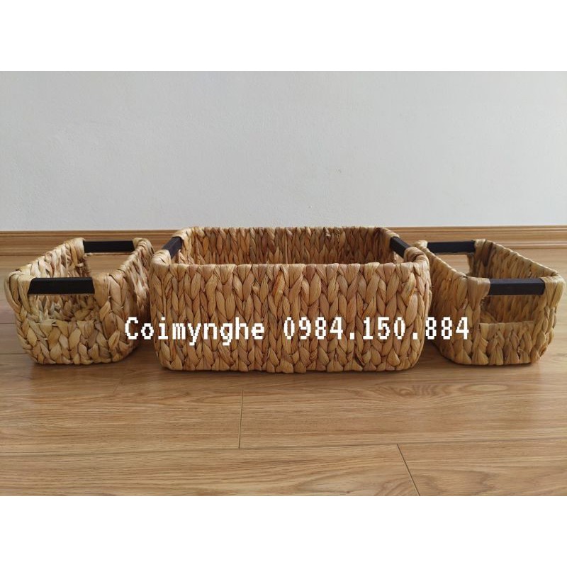 Giới thiệu Bộ 3c giỏ lục bình quai gỗ