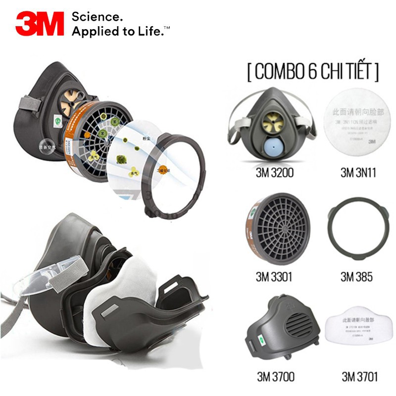 - Trọn bộ lọc hóa chất và lọc bụi: Bao gồm thân chính 3M3200, phin lọc 3M3301, tấm lọc 3M3N11, miếng giữ, 3700, bông lọc bụi