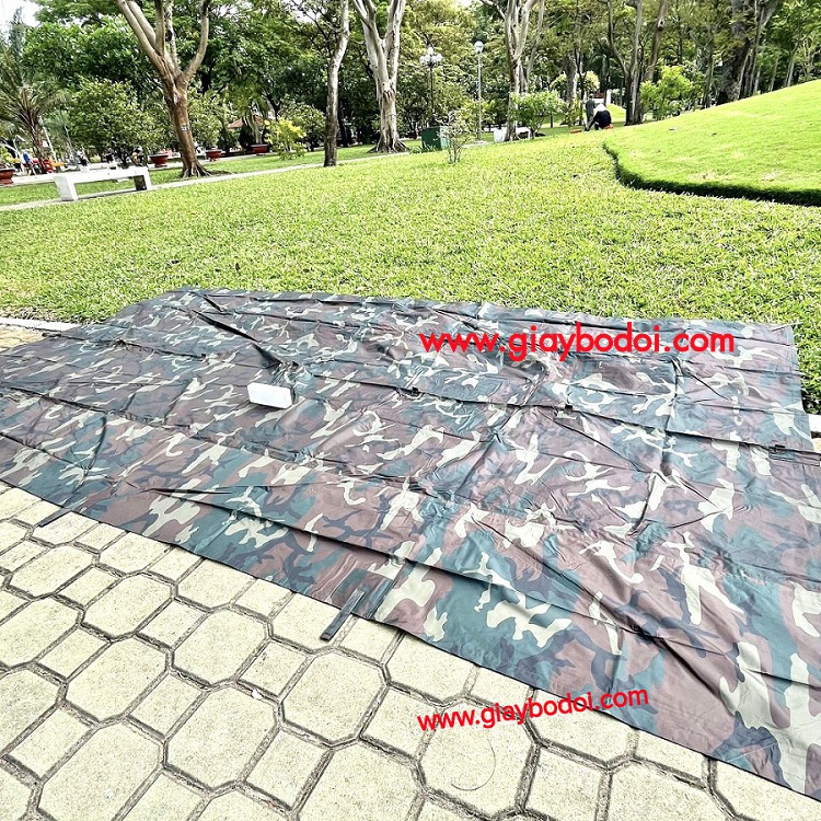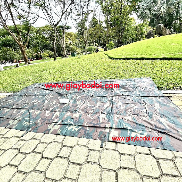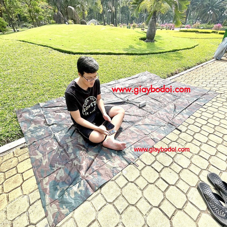 - Ở các cạnh bên và ở giữa có đai để có thể treo, mắc hoặc neo lại,chất liệu, hai mặt, mềm, dày, chống nước tuyệt đối .. Nếu cắm trại có thể mang theo đểtrải bên trong lều để ngủ. Các mốinối hay đường may đều có keo chống nước. Trọng lượng 1.3 kg