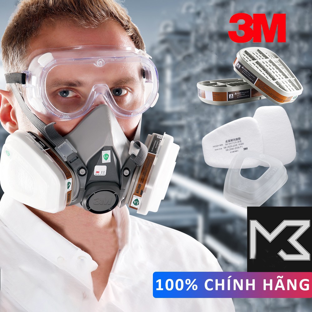 3M6200 Trọn Bộ Chính Hãng Kèm Kính Chống Hóa Chất
