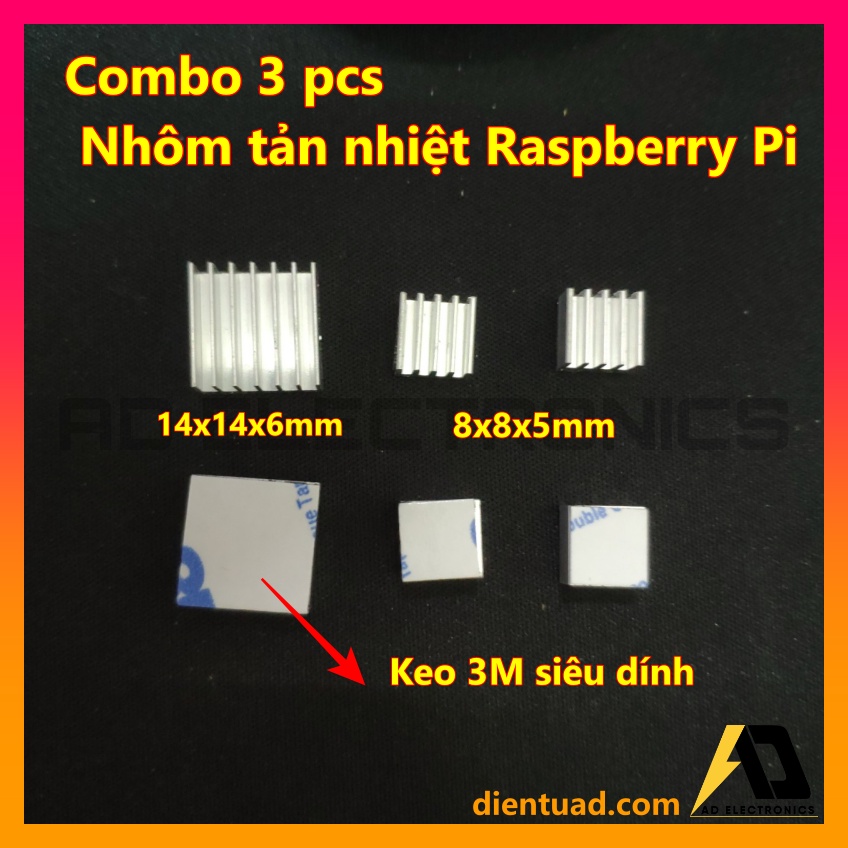Giới thiệu [ 3pcs ]Combo 3 Miếng Nhôm Tản Nhiệt Dùng Cho Rasperry Pi 3B+/3/2 Có Keo 3M siêu dính