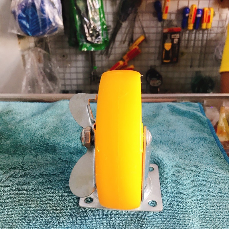 Bộ 4 bánh xe 1,2 tấc nhựa vàng nghệ xoay 360 độ đẩy hàng có khoá