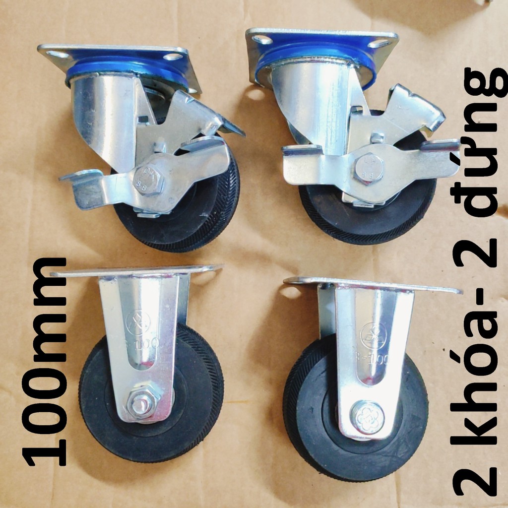 Nhà cửa & Đời sống > Dụng cụ & Thiết bị tiện ích > Xe đẩy || Bộ 4 Bánh xe đẩy chịu lực cao, đường kính 100mm (2 khóa/ 2 tĩnh)Còn hàng