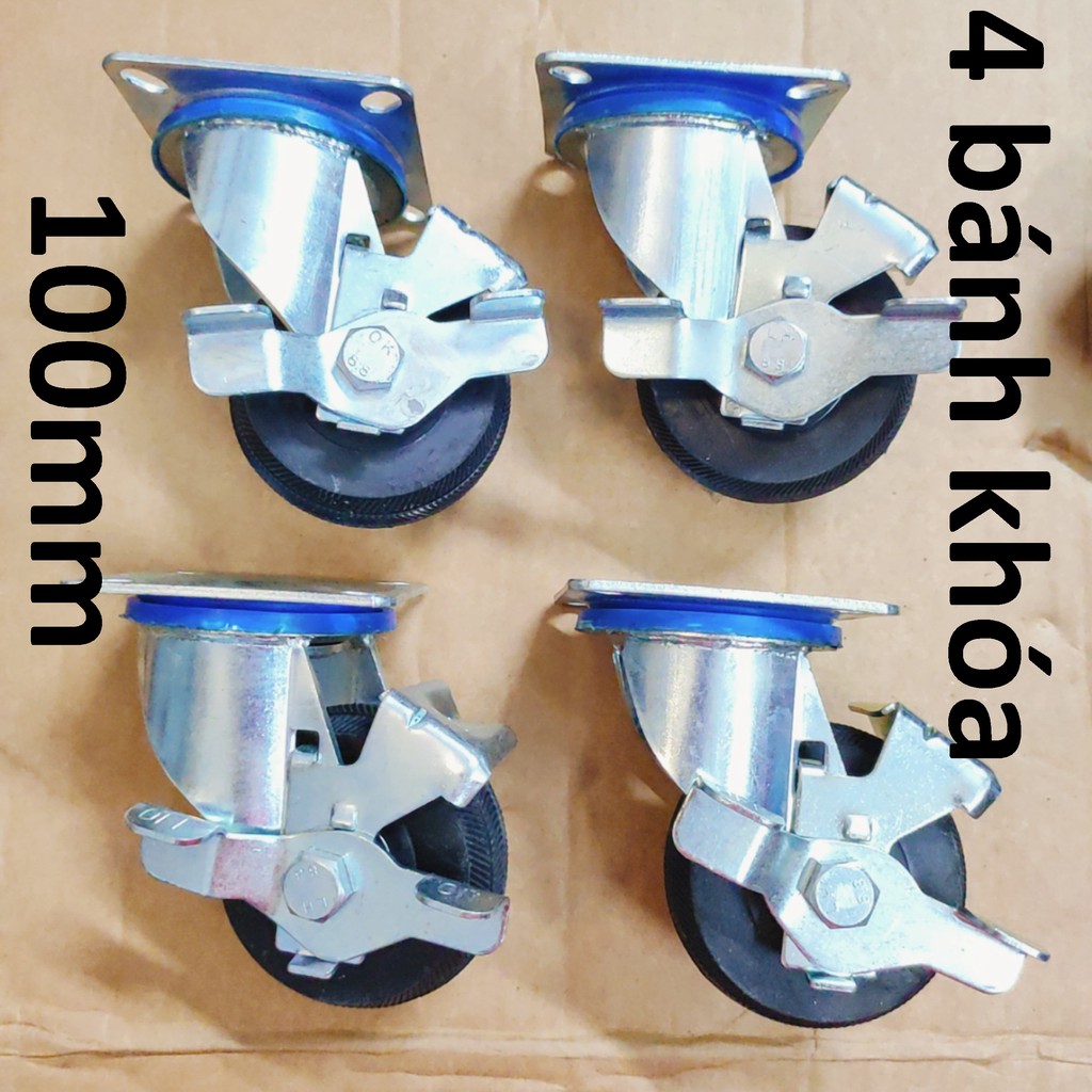 Bộ 4 Bánh xe đẩy chịu lực cao, đường kính 100mm (4 bánh khóa)