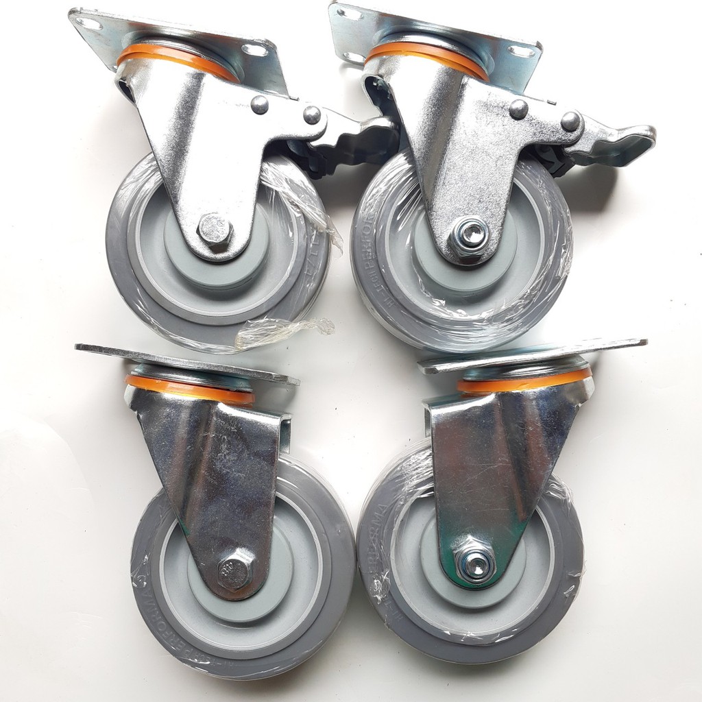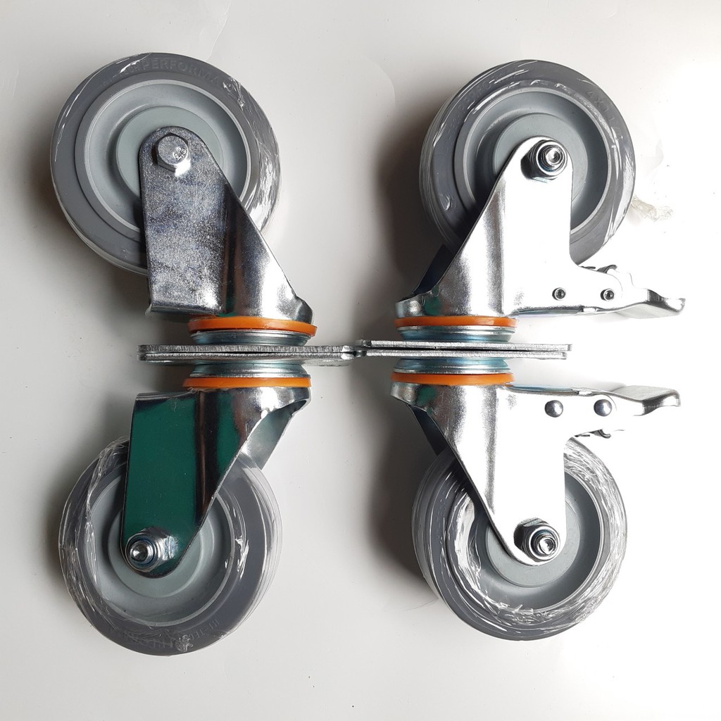 Bộ 4 bánh xe đẩy hàng cao su đặc Performa - MITUHOME- Bánh xe 100mm mềm dẻo, Chống ồn tốt chịu lực 200kgThông tin chung: