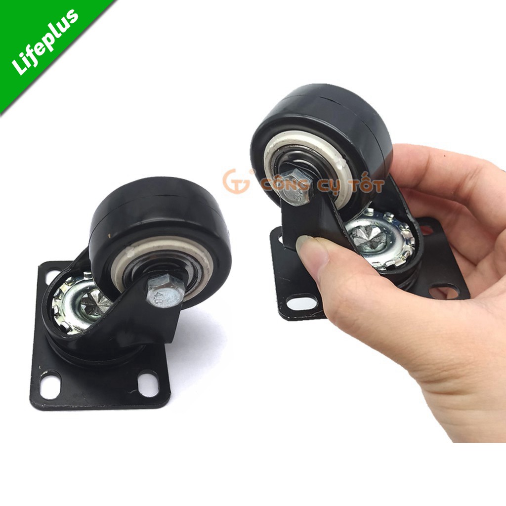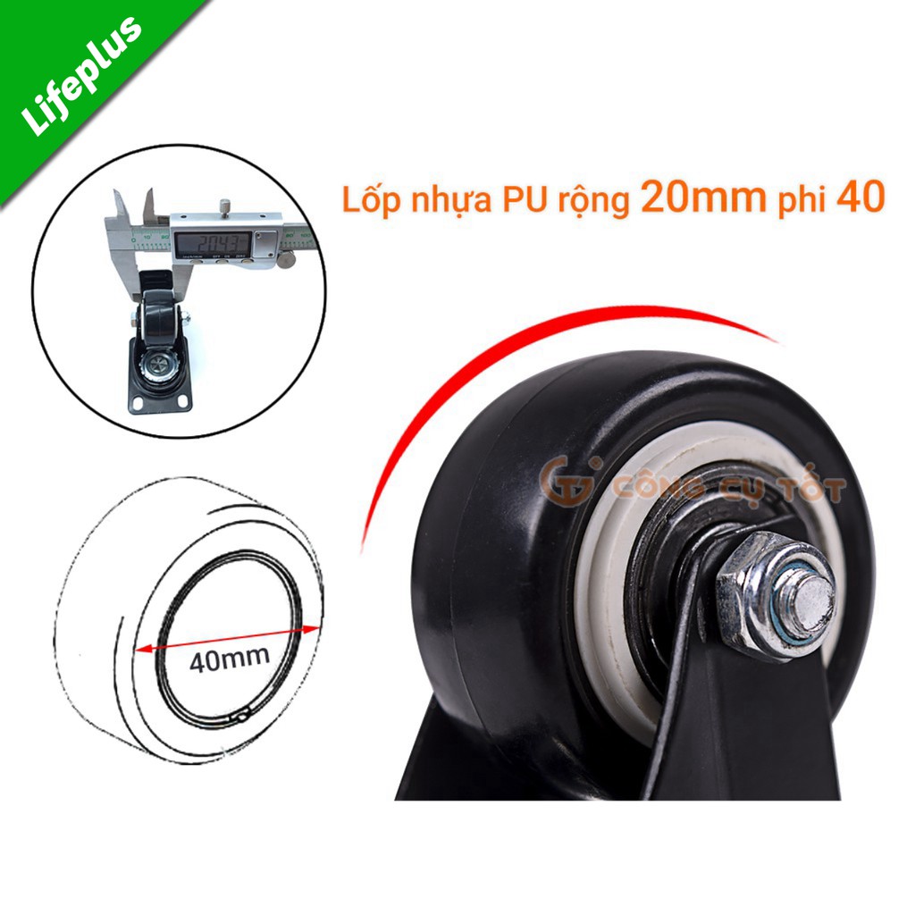 Nhà cửa & Đời sống > Dụng cụ & Thiết bị tiện ích > Dụng cụ > Khác || Bộ 4 Bánh xe đẩy hàng tổng tải 120kg xoay 360 độ lốp PU đen hãm sau Φ40mmCòn hàng