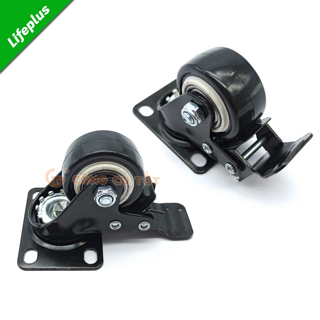 Bộ sản phẩm bao gồm: 2 Bánh xe mặt đế xoay có khóa + 2 Bánh xe mặt đế xoay không có khóa