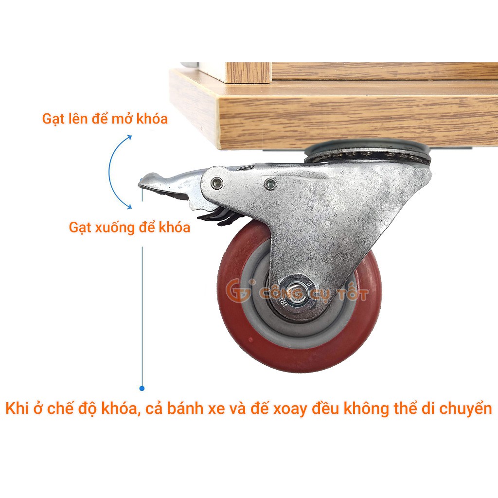 Bộ sản phẩm bao gồm: 2 Bánh xe mặt đế xoay có khóa + 2 Bánh xe mặt đế xoay không có khóa