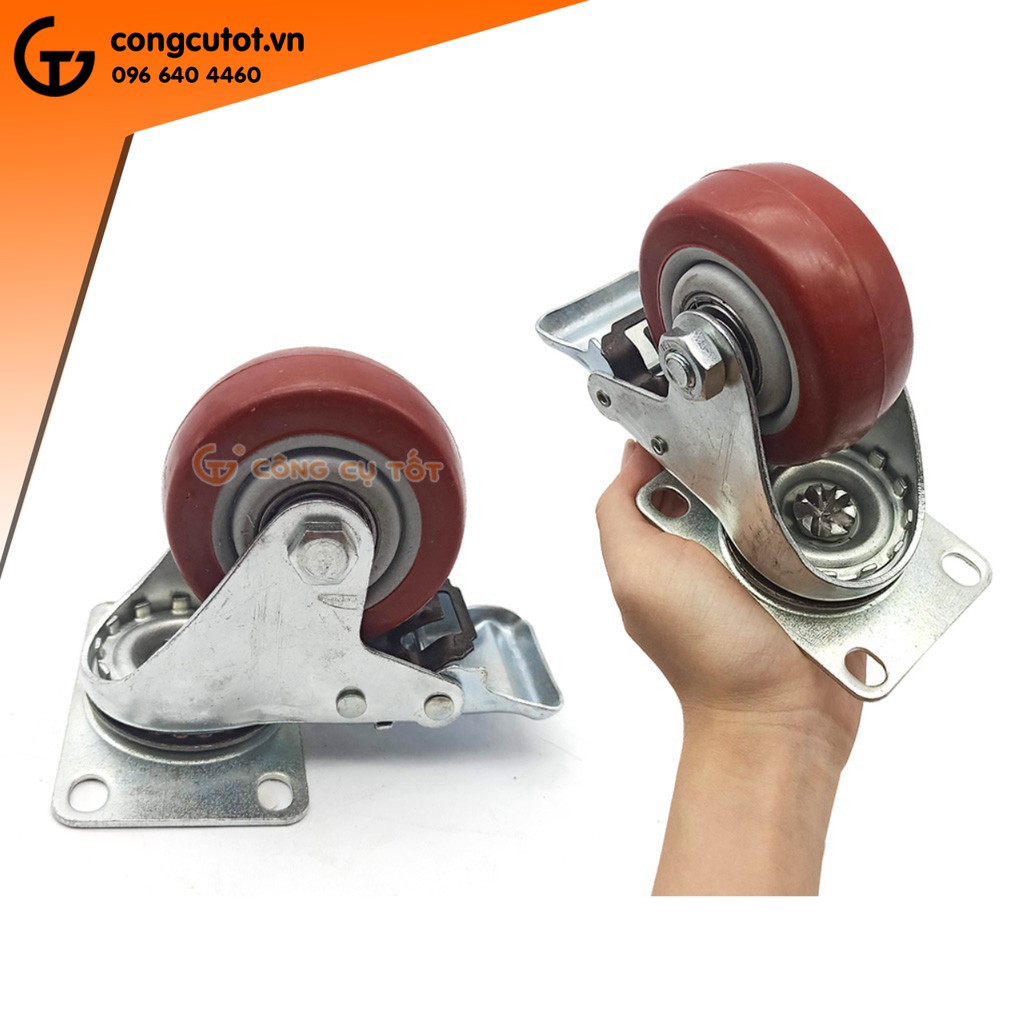 Nhà cửa & Đời sống > Dụng cụ & Thiết bị tiện ích > Xe đẩy || Bộ 4 bánh xe đẩy hàng tổng tải 200kg xoay 360 độ lốp nhựa TPR đỏ mận hãm sau Φ75mmCòn hàng