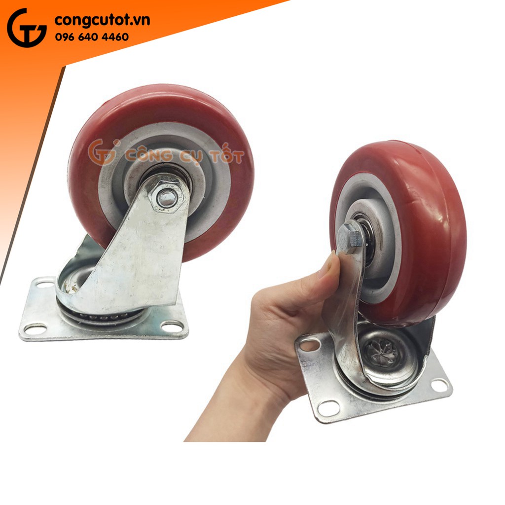Nhà cửa & Đời sống > Dụng cụ & Thiết bị tiện ích > Xe đẩy || Bộ 4 bánh xe đẩy hàng tổng tải 220kg xoay 360 độ lốp nhựa đỏ mận hãm sau Φ100mmCòn hàng