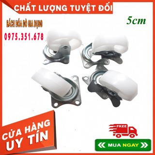 Bộ 4 bánh xe đẩy hàng xoay 360 độ, có khóa chống trượt loại 5cm nhóm màu trắng