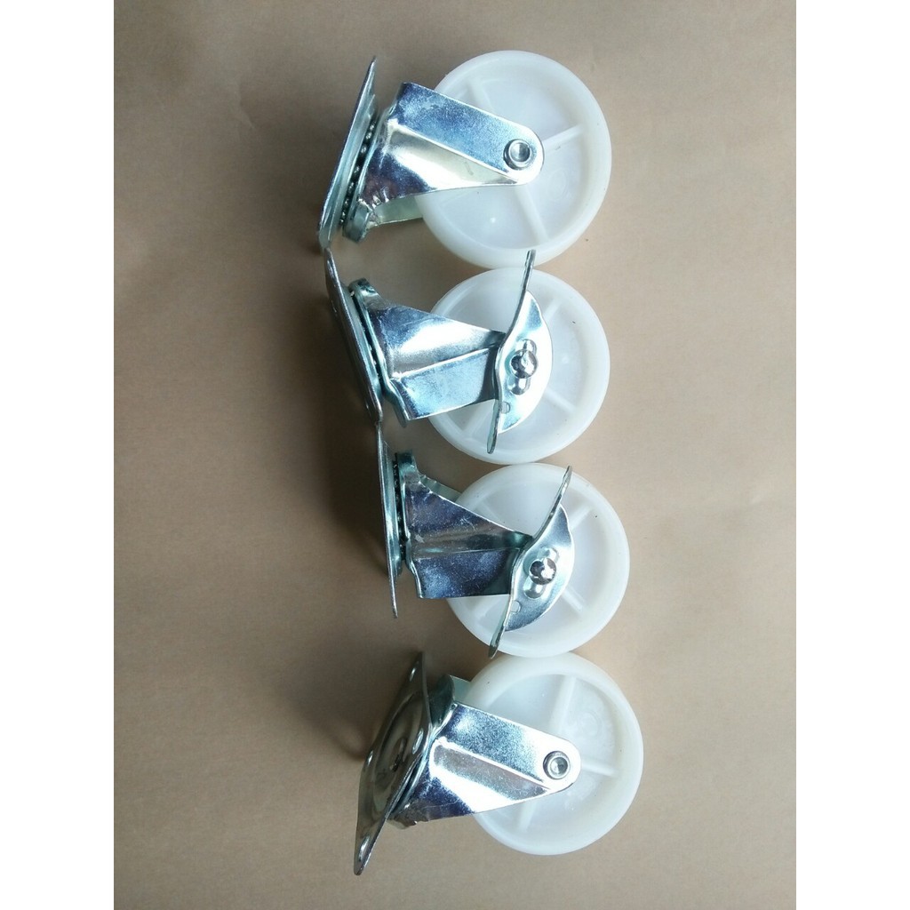 Bộ 4 bánh xe đẩy hàng xoay 360 độ, có khóa chống trượt loại 5cm nhóm màu trắngBộ 4 bánh xe đẩy hàng, chất liệu thép không rỉ