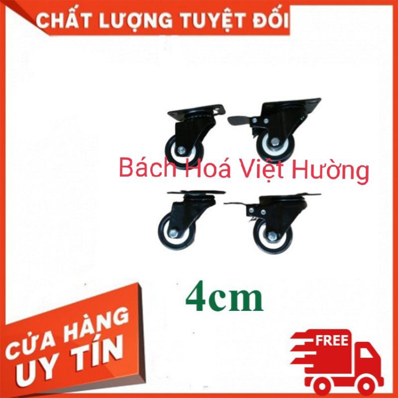 Bộ 4 bánh xe đẩy hàng xoay 360 độ có khoá chống xoay chống trượt 4cm
