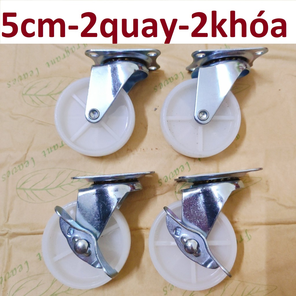+ Bánh xe trắng 5cm khóa giá 11.000