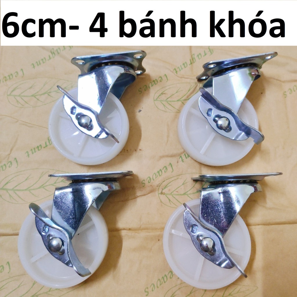 + Bánh xe trắng 6cm khóa giá 16.000