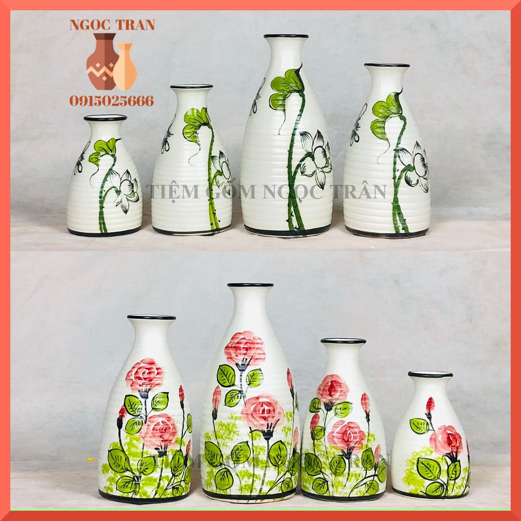 Bộ 4 bình gốm ,lọ hoa vẽ tay -gốm sứ Bát Tràng-tiệm gốm Ngọc Trân