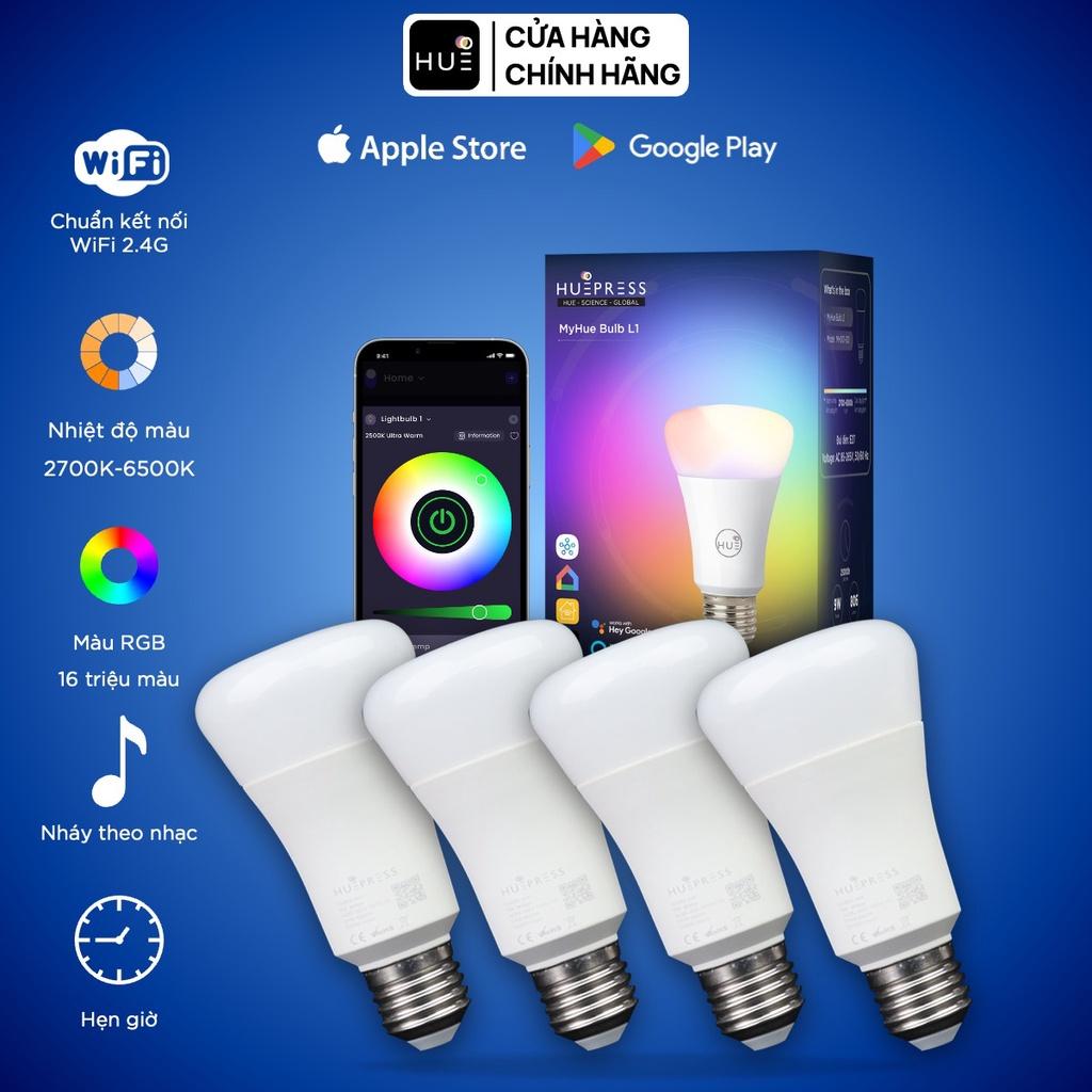Bộ 4 bóng đèn LED tròn thông minh HuePress Bulb L1 Wifi RGBCW 9W Wifi control
